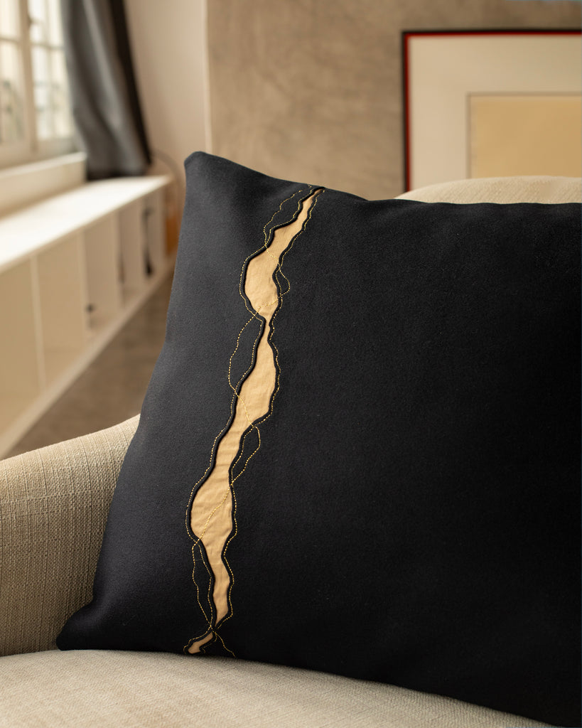 Cette housse de coussin est fabriquée à partir d'un stock dormant de laine bleu marine.