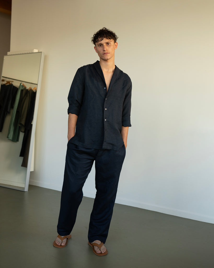 Elle est en sergé de lin et viscose provenant de fins de stocks.