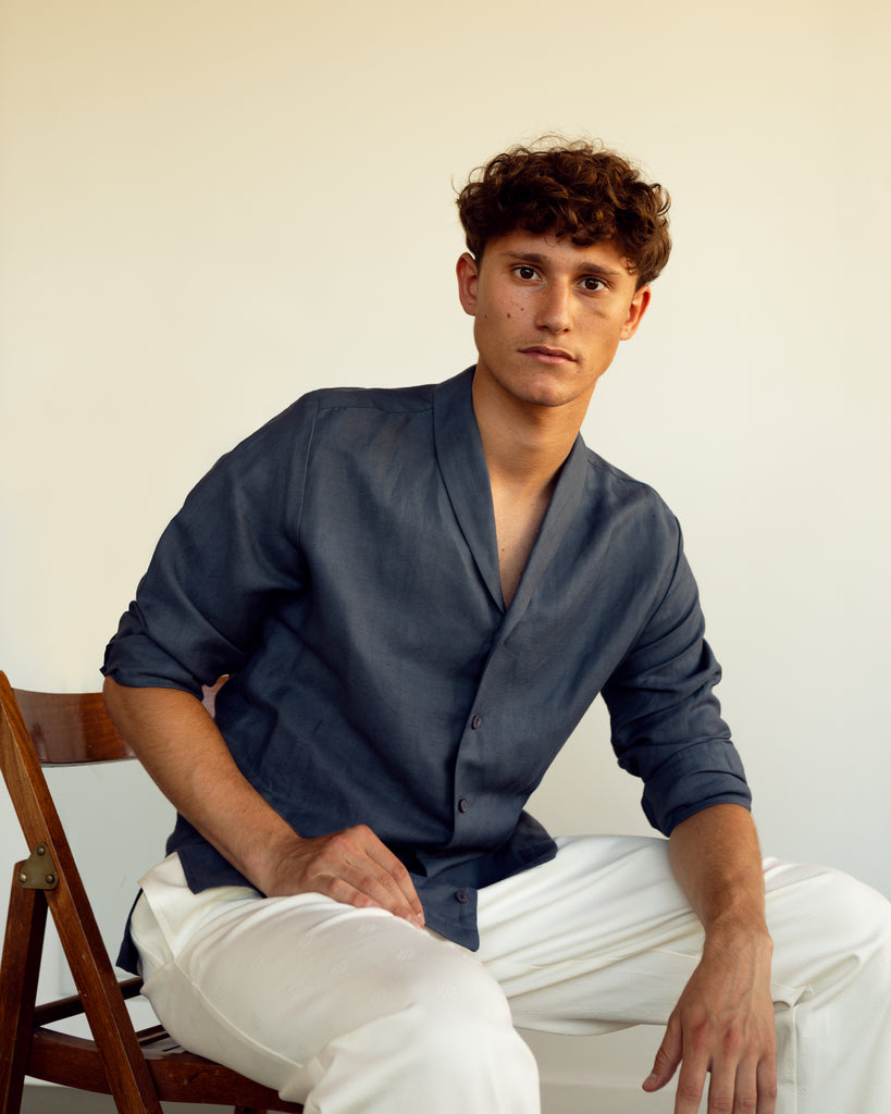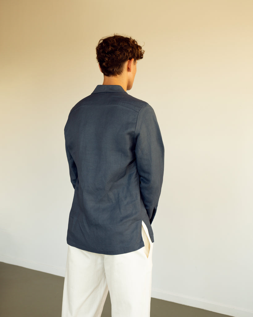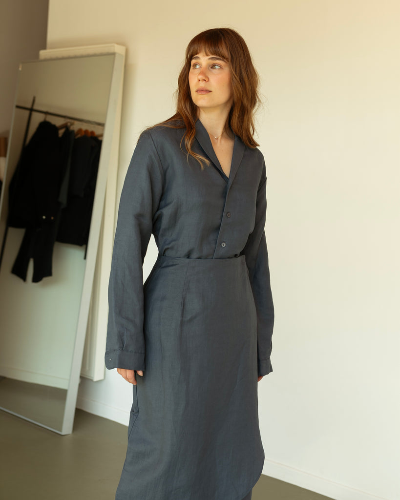 Elle est en sergé de lin et viscose provenant de fins de stocks.